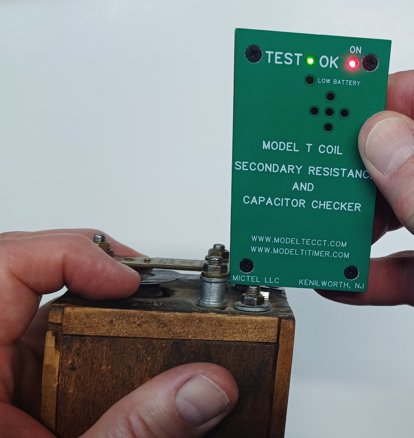 3. Checks Model T coil secondary resistance is within its nominal range (2200 to 3800 Ohms)