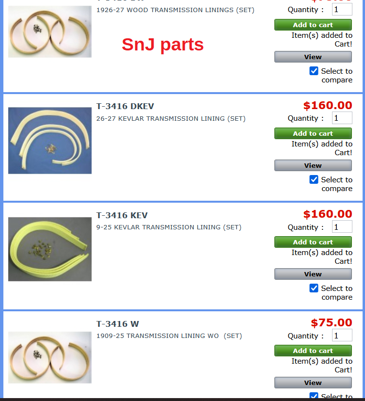 Its possible that this company has been the one making the material that others have cut up into kits. Also possible that the Model T band sizes (width & thickness) where common. No one has revealed where they got there stock from to make the band kitsJohn kuehn wrote: ↑Sun Jun 22, 2025 9:19 amBy the looks of this company and reading their information on what they can make these folks could make Model T band linings but the cost to do it would come into question. Like other items would there be enough interest and could enough be made to keep the cost down.