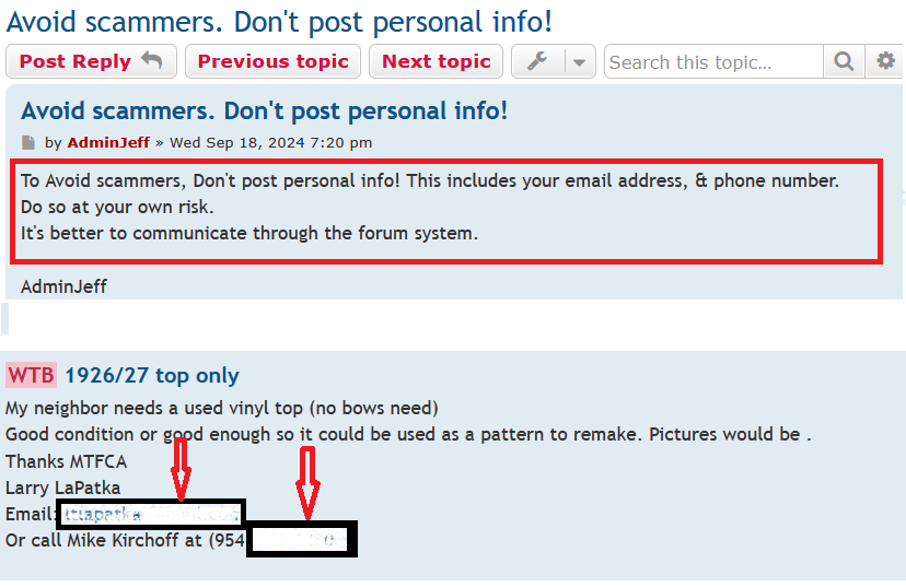 Larry LaPatka wrote: ↑Thu Jun 26, 2025 3:06 pmWell it has finally happened to MTFCA. I was trying to help out a neighbor who is new to the Model T family. He needed several 1926/27 Model T parts to go a long way to get his 1926 Model T roadster up and running. I put an ad on this parts section as a favor to him. A gentleman in Utah sent photos and had all the items needed. My neighbor agreed on the price and shipping means and used paypal. To cover himself just in case it was to good to be true. He paypaled the money and as of this date, no goods. Today he called and the phone has been disconnected. Looks like these bastards have infiltrated our glorious website and