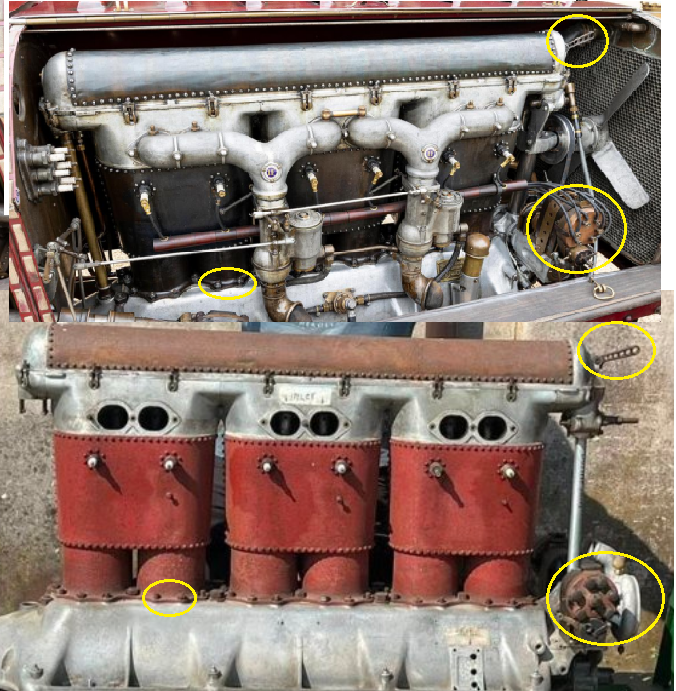 I guess I should have pointed out the not so obvious parts that identify the engine as the one in the 1905 Fiat-Isotta-Fraschini Volo-6 Competition
