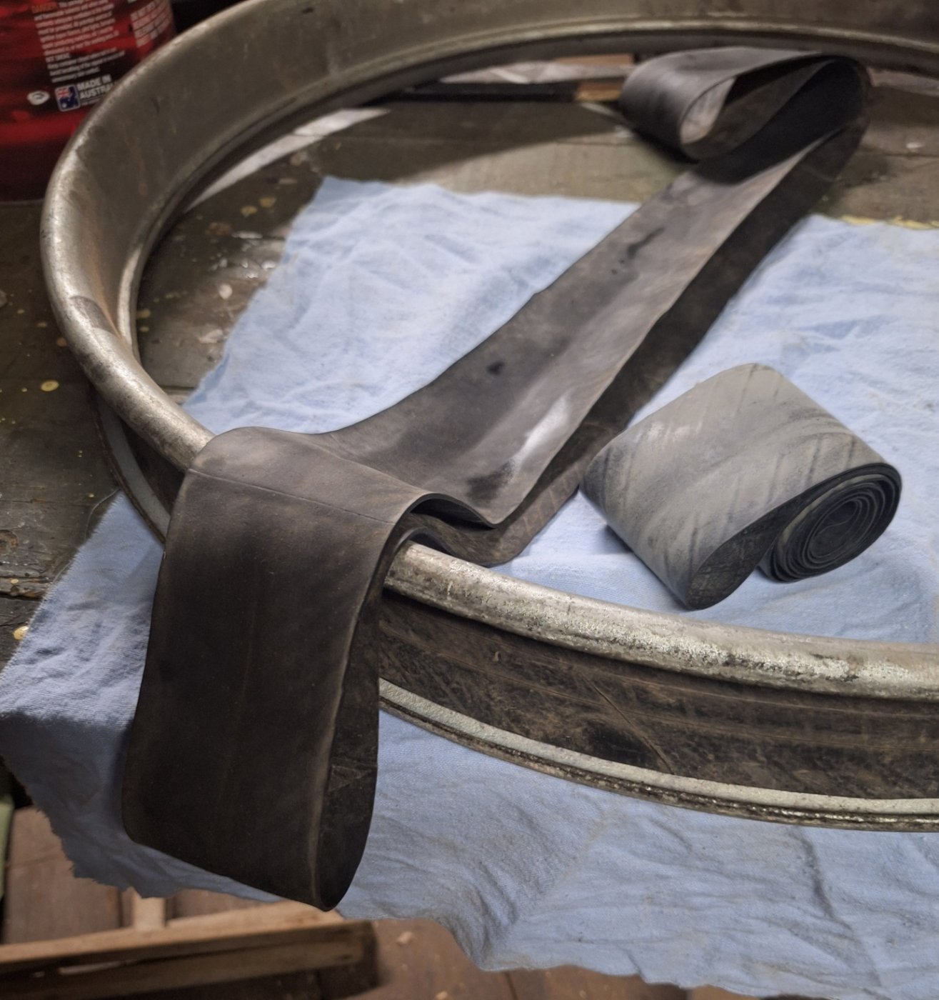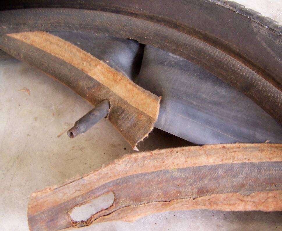 Dan's photo of the old time flap is revealing. Even this tough old fibre reinforced flap and the tube, have clearly been driven down to the rim base. It also shows that it is unnecessary to notch the bead to fit the valve stem.