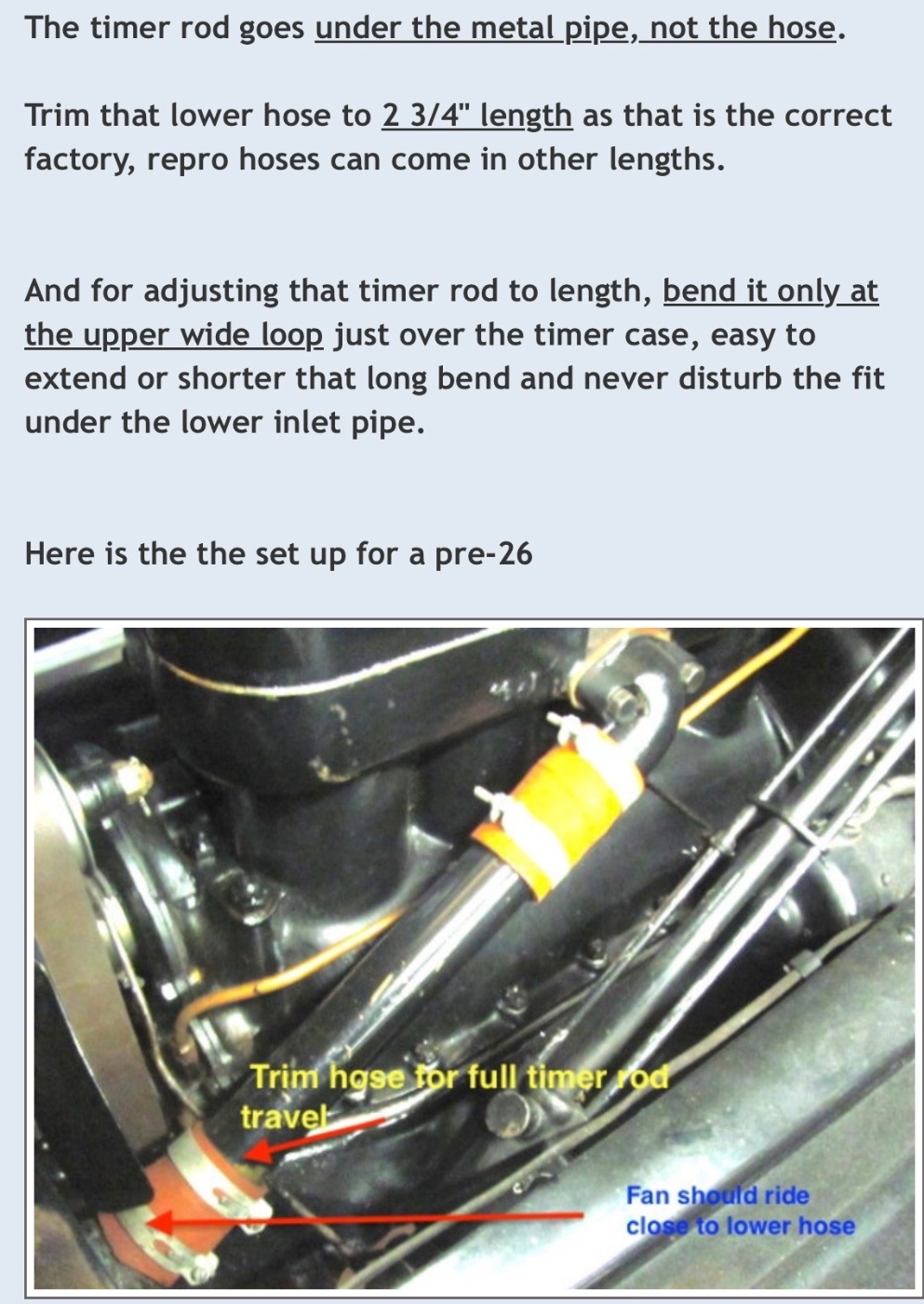 I also verified the distance of 65mm / 2.5" between spark advance rod on timer and the screw at oil fill socket.