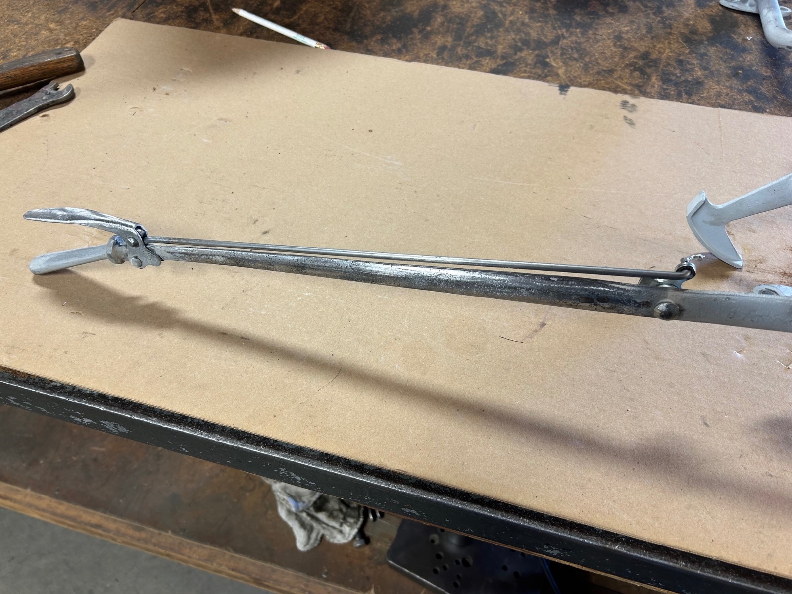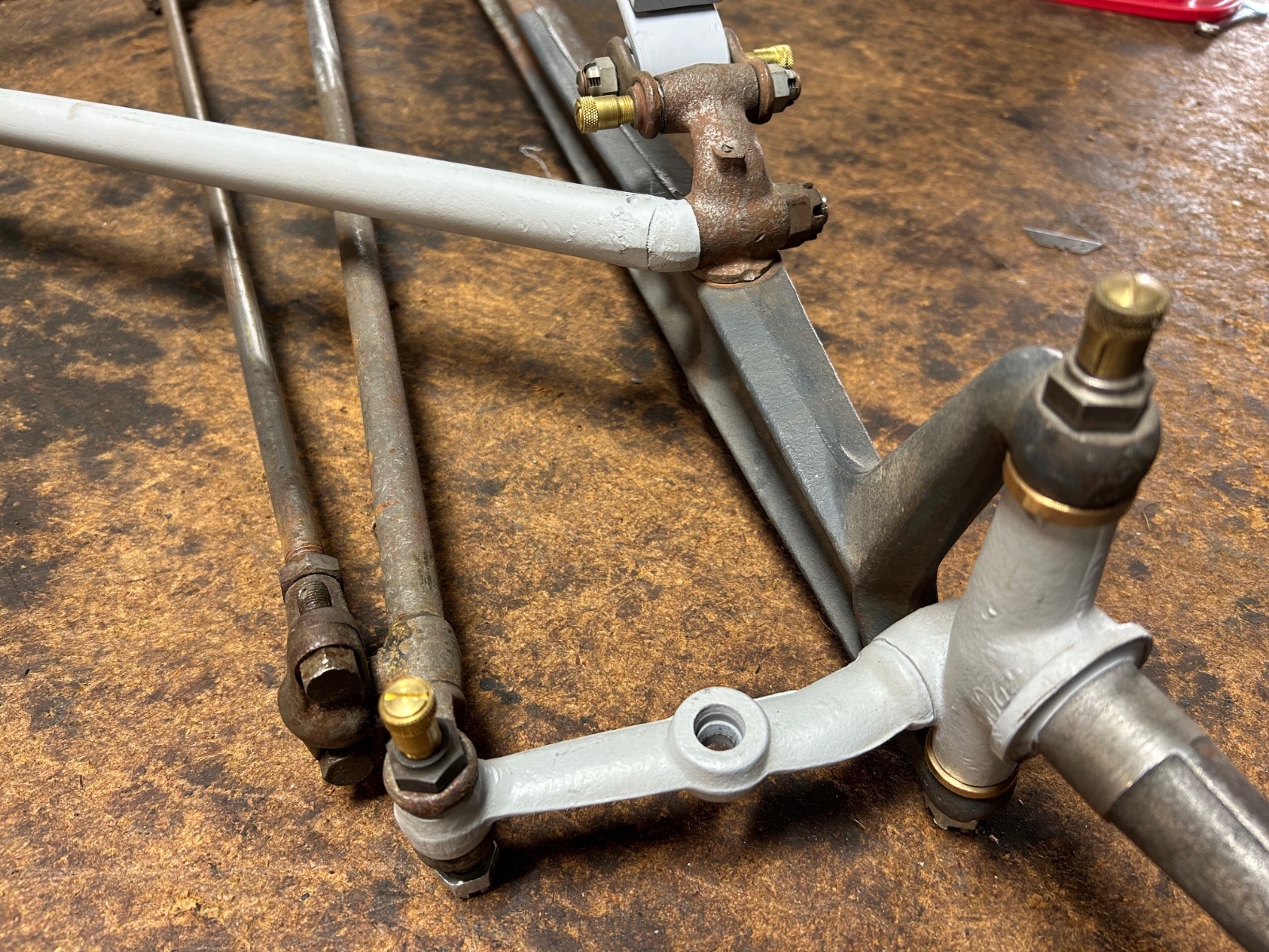 Made new brake release rod after straightening hand brake lever.
