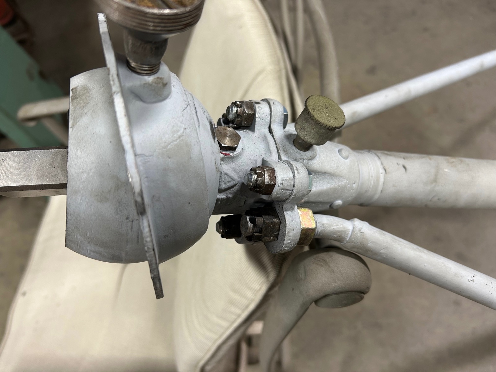 Torpedo column with a loose gear case on top, so I reset the rivets and silver soldered the joint. Now to clean the mess off.