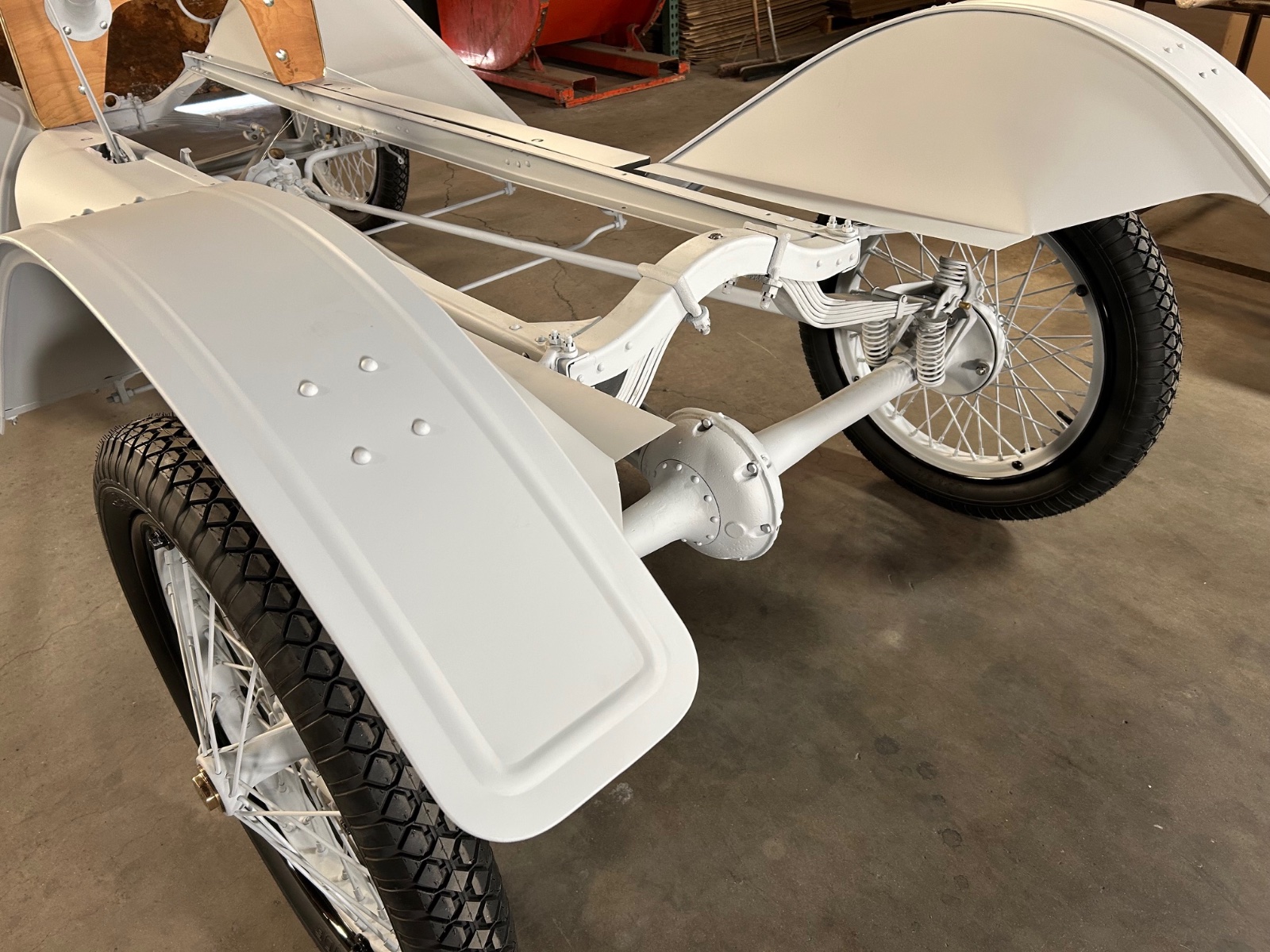 I used a new front spring and I didn’t care for the taper on the end of the leaves, so I reshaped and cleaned up the edges. Then took all the pieces to the sandblaster and then shot the parts with a sealer to keep them from rusting.