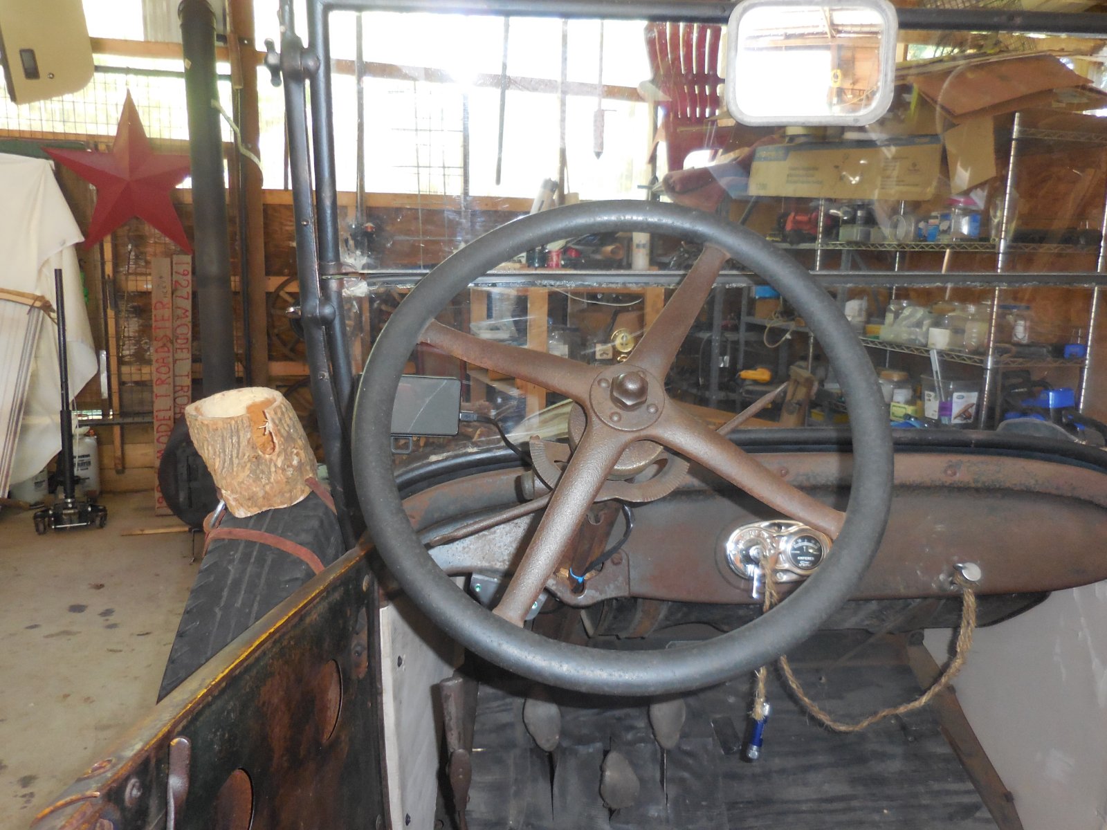 I believe I read somewhere that Ford was the first carmaker to include a cupholder in the first version of the Taurus, so when someone comments on my cupholder, I tell them that although a Model T didn't originally have one, Ford was first to include one and I have updated my T with a real Ford part.