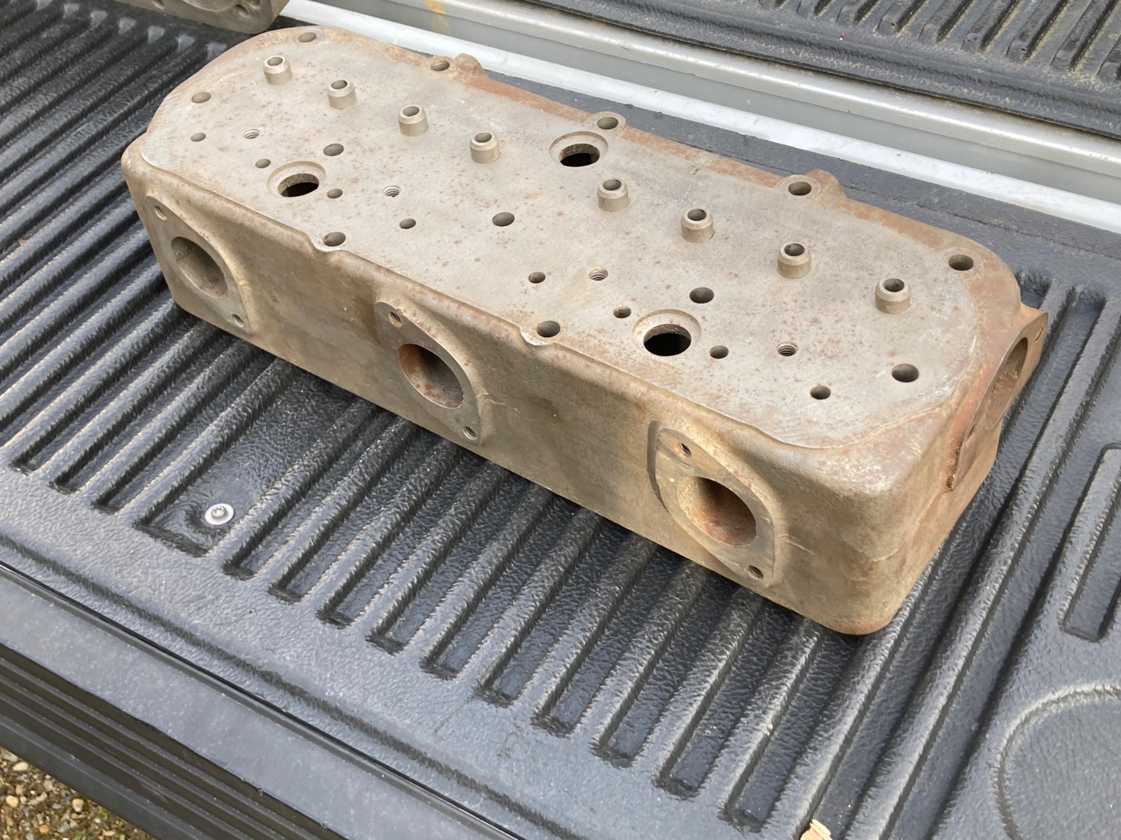 Wish I knew how to post photos here. My head has 2 intake ports on the top of the head. Also it has removable rocker stands with adjustable rockers. The exhaust side of the head has 2 ports. The intake manifold that came with the head appears to be an original casting and at the carburetor flange it is horizontal as to use a stock T carb.