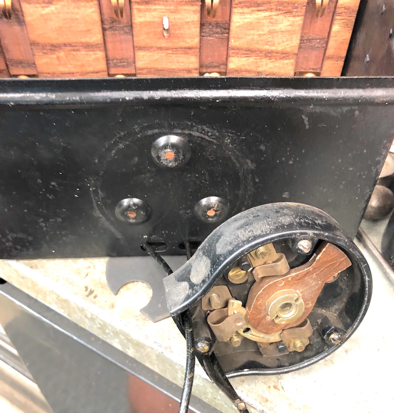 Here is a 1918 box with steel face switch and sure enough has the reinforcement strip from front to back wood. Was searching my old Chickasha photo files just ran across this one , oops :(