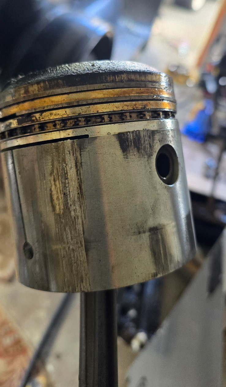 Babbit looks new on all except for piston 2. Piston 1 skirt looks like wtf happened here?