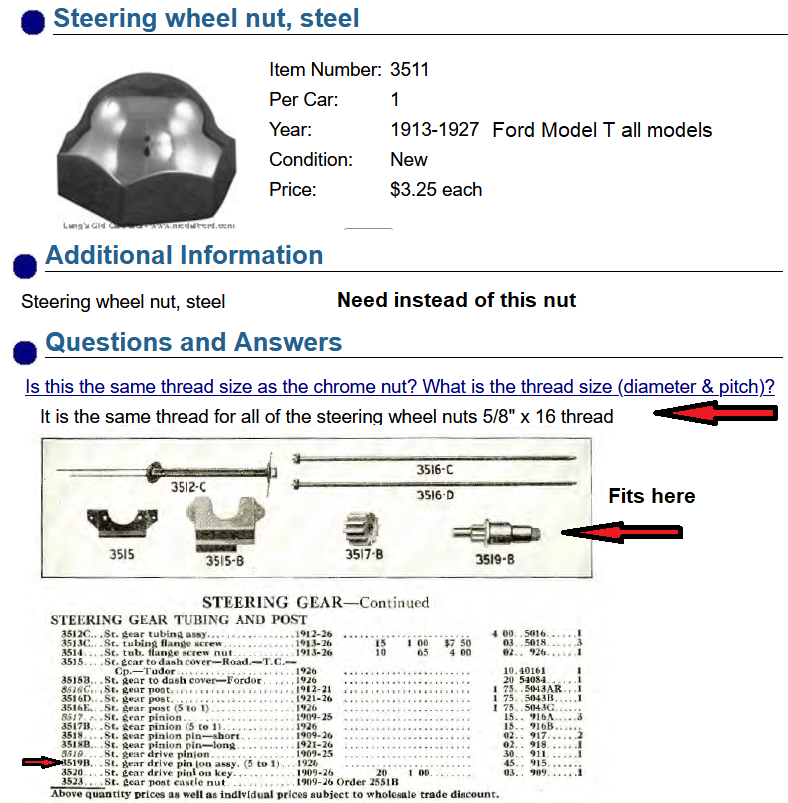If you got the correct part please let me know where you got itWorldChamp1914 wrote: ↑Thu Oct 30, 2025 3:02 pmI just talked to Steve Lang, he recommended cutting down a steering wheel nut because it’s 5/8 -16….so I ordered a steel one