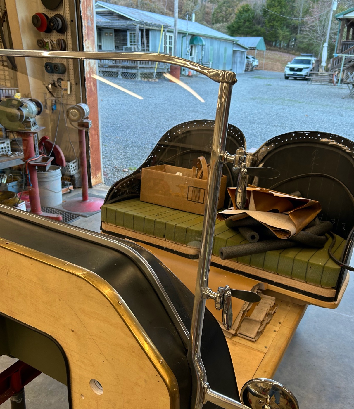 All what is left for the windshield is upper and lower channels with retainers/cut and polish the glass. Started the pull back pleated seat wrap for back and cushions.