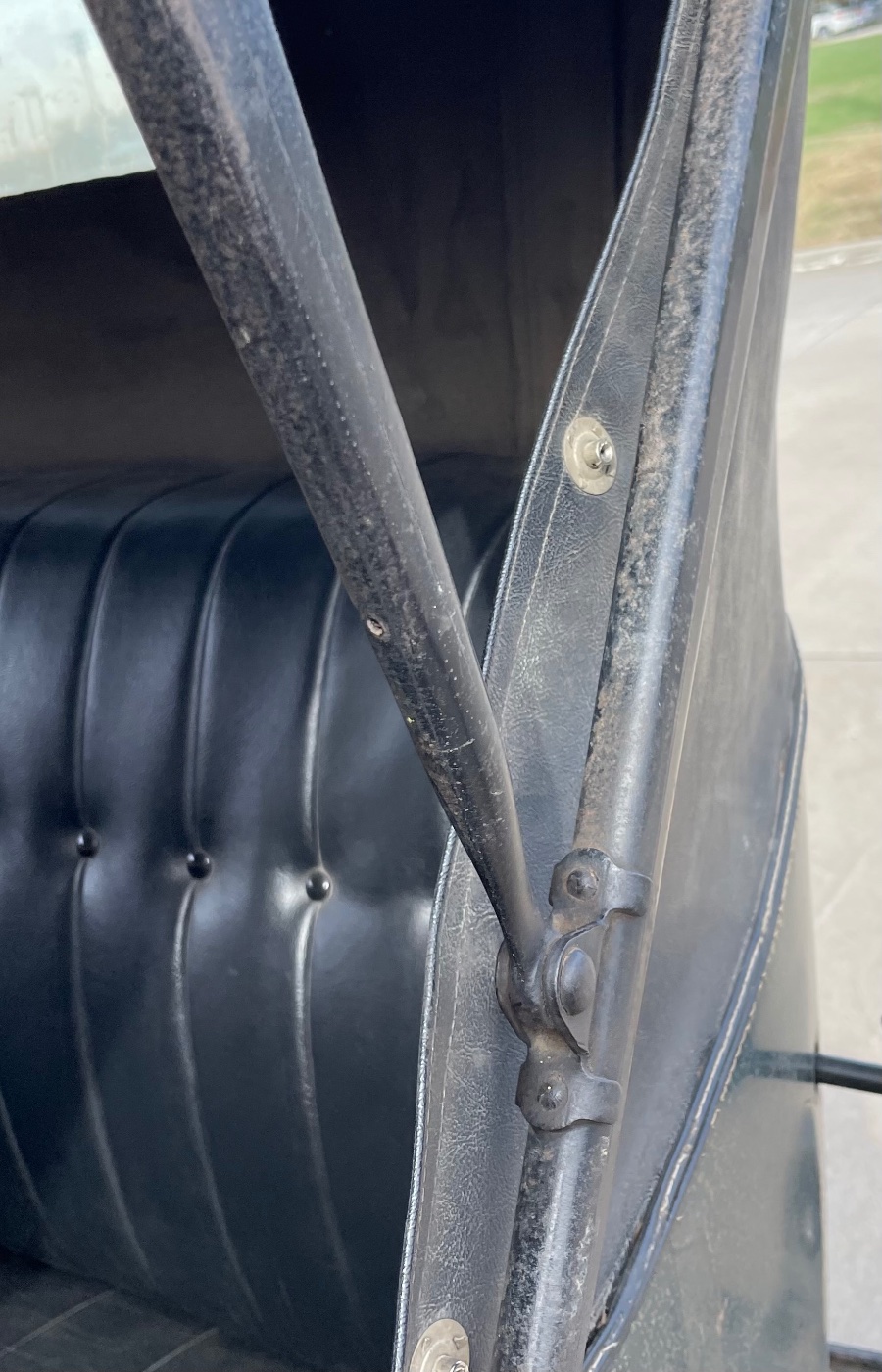 Here is the fastener. In the closed position, you can see the area that the side curtain would occupy. If you need the "male" fastener, Mike at Classtique sells them. The first one with the ring requires a special tool for installation which he also sells. If you use the prong type, you don't need the special tool.