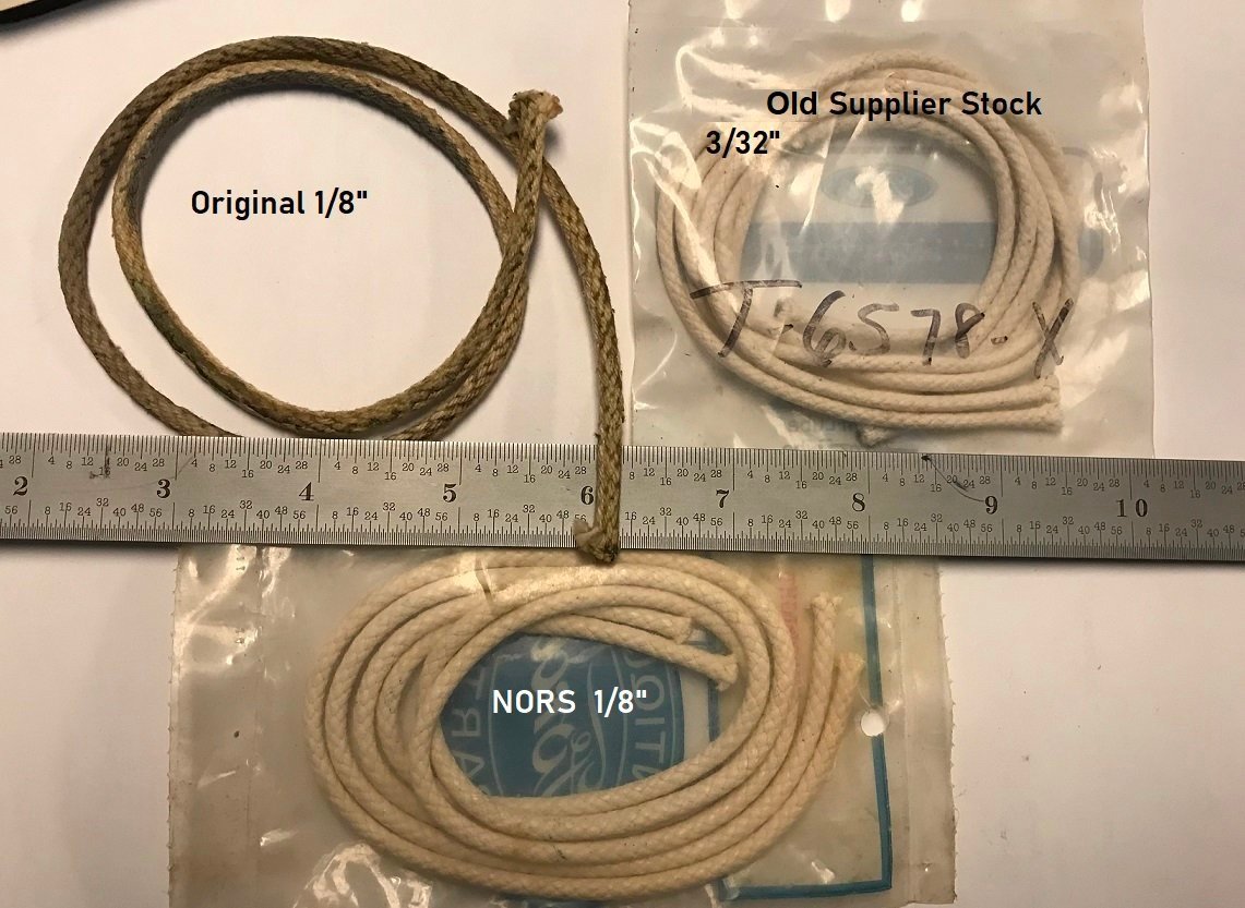 Thickness is important too, to prevent lens rattle, the modern nylon cord on left is smaller, the larger cotton cord (like clothes line) with more twists is better.