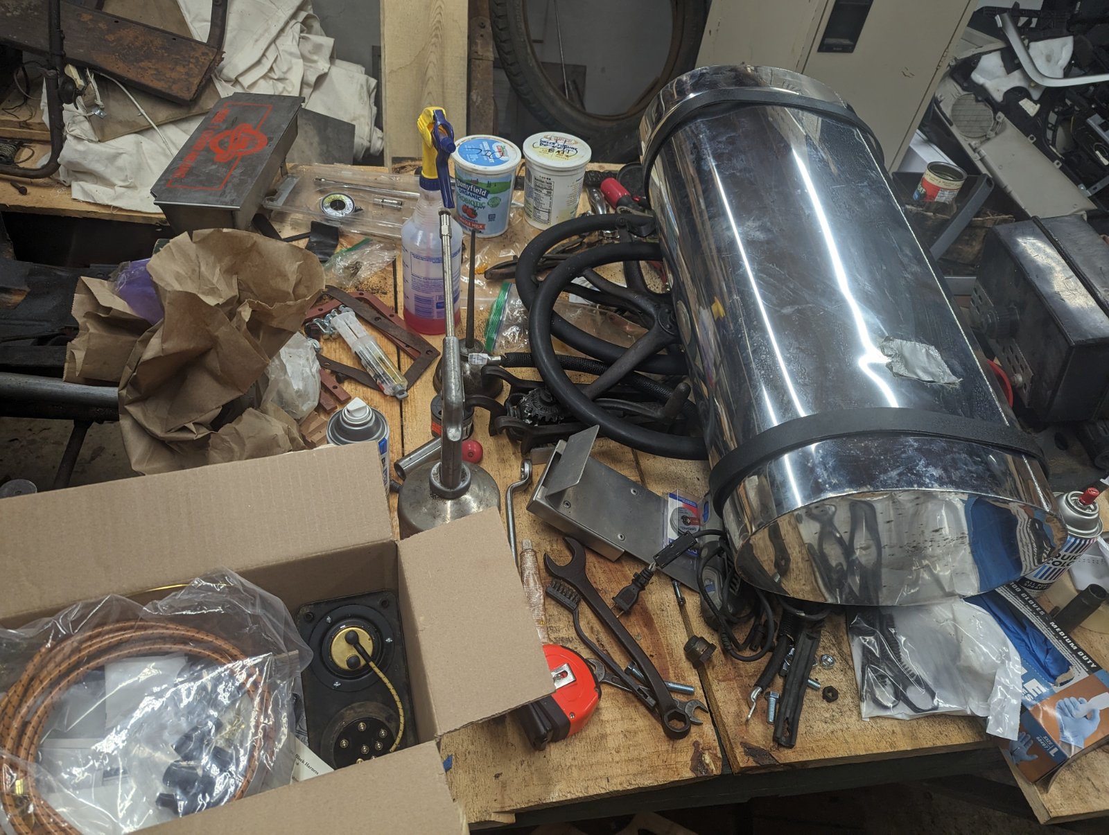 Good news, I picked up a hood and stainless steel tank from a fellow in Vermont. The hood will require a bit of tin knocking to fit, and one minor hinge weld, but should prove satisfactory.