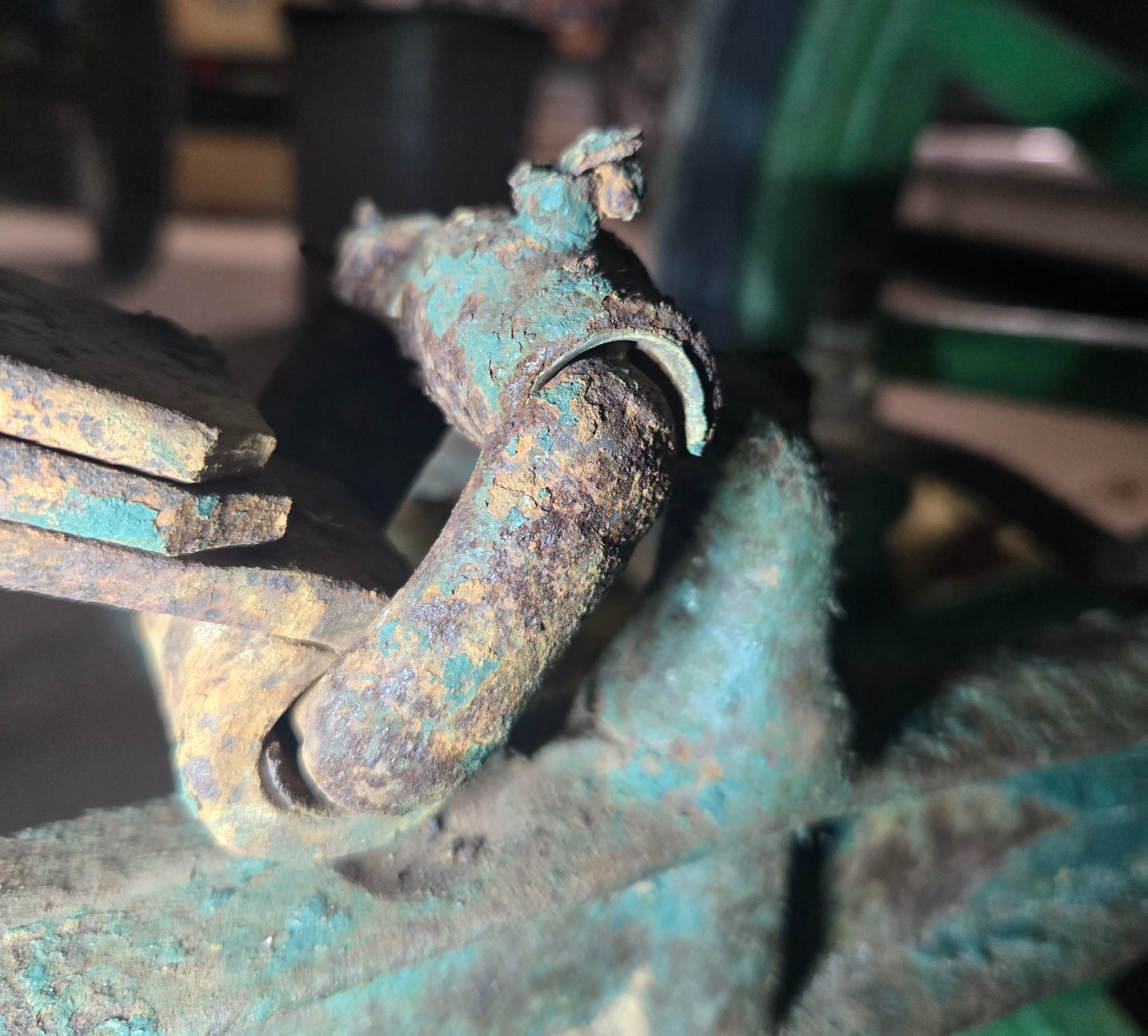 A lot of what looks like heavy rust on the undercarriage appears to actually be several layers of flaking paint.