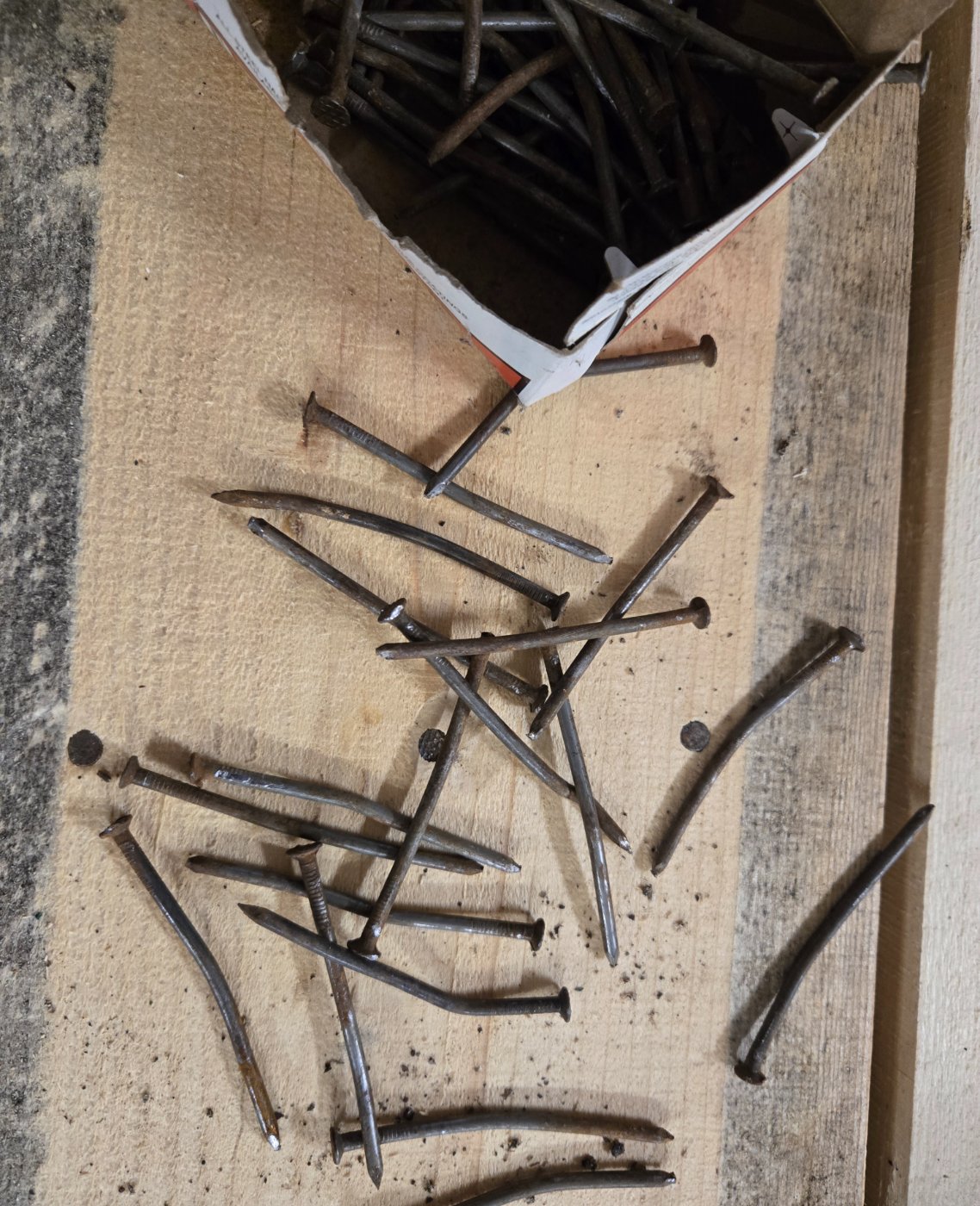 Reuse the nails if you can. I grew up on our farm and we would save “good used nails” for the next project when one would come up.