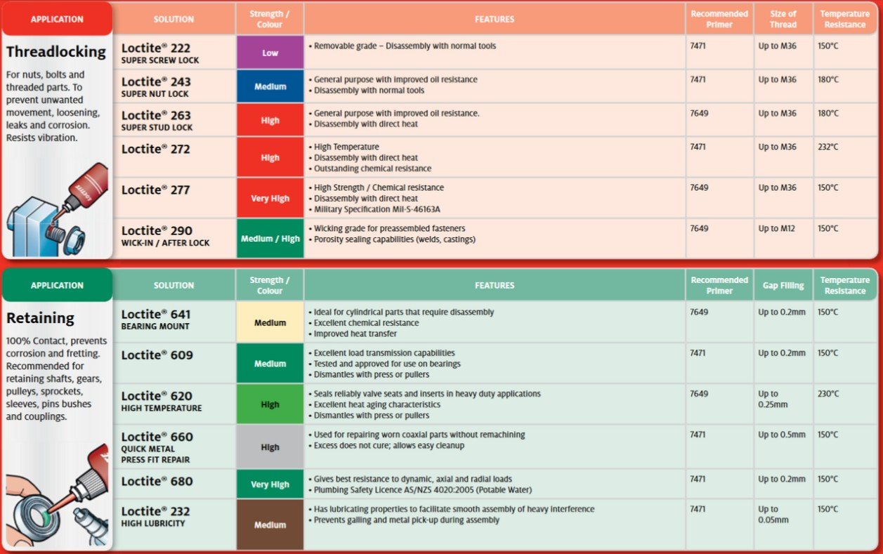 At work we used to have a row of different Loctite bottles for different tasks and jobs.