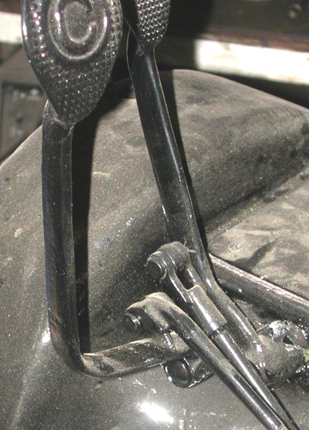 That C letter with the ‘flat’ side on the C looks like same on this early 2 pedal Ford. So maybe early clutch pedals have that look?