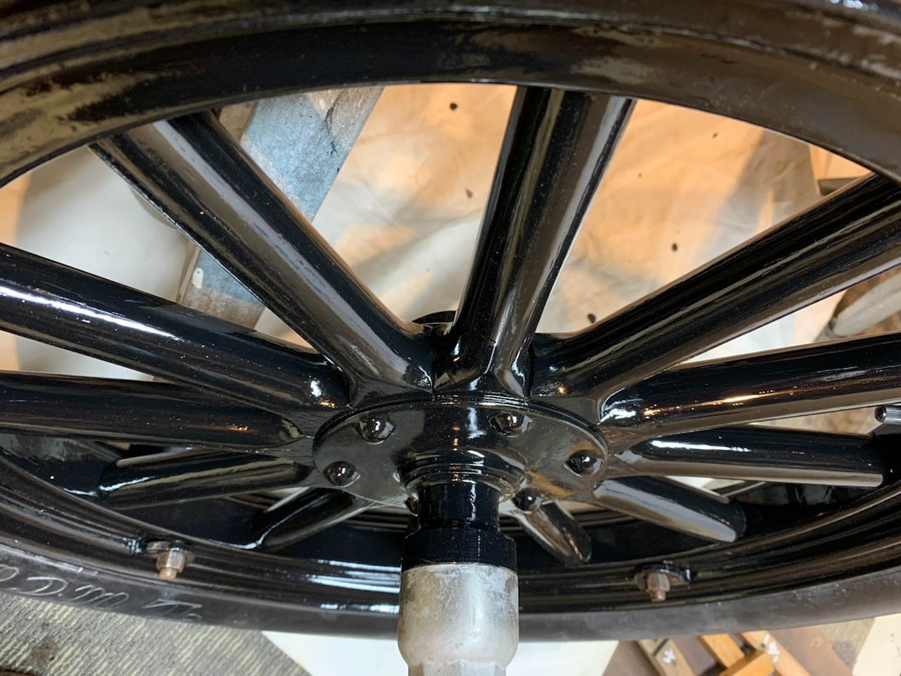 This week I'm planning on priming the wheels to our 14 touring car that were rewooded by Stutzman's last fall. I am using a Urethane spray primer that is two part and cures pretty quickly. I am curious what people's experience has been, good or bad, in priming or painting the wheels laying horizontally and doing one side at a time, versus doing them vertically on a rod and rotating them by hand as they are painted.
