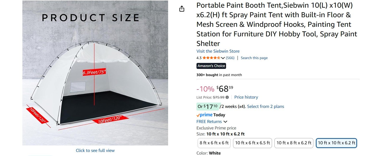 The pictures show the parts spread out to dry, but I use this paint tent with a floor from Amazon when I paint. They sell several sizes, and I got the largest one that they sell, with a 10'x10'x6.2' dimensions. I really like it!jiminbartow wrote: ↑Sat Mar 21, 2026 8:51 pmHow are you keeping the overspray off of your driveway?