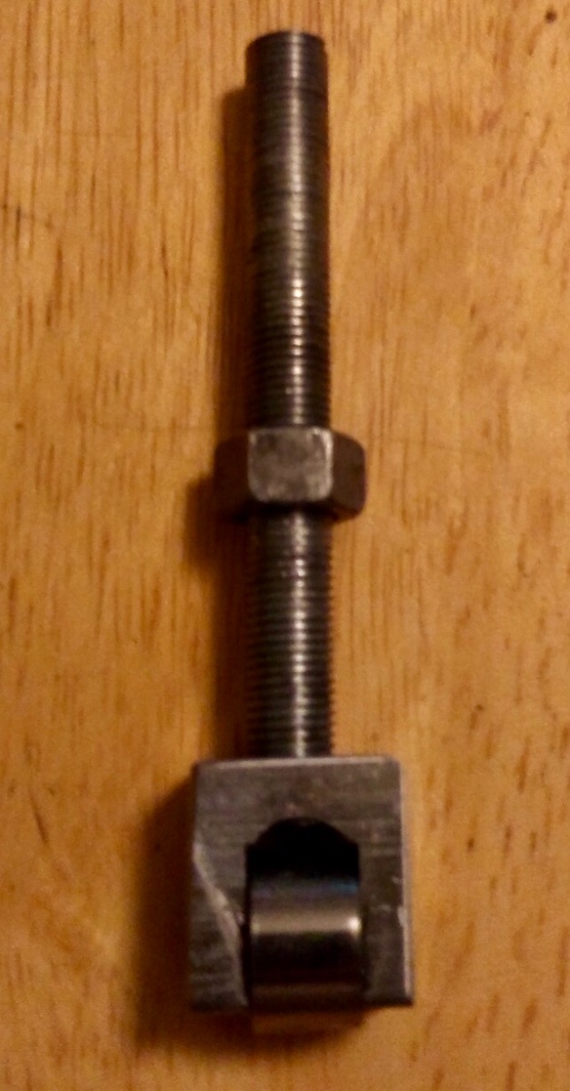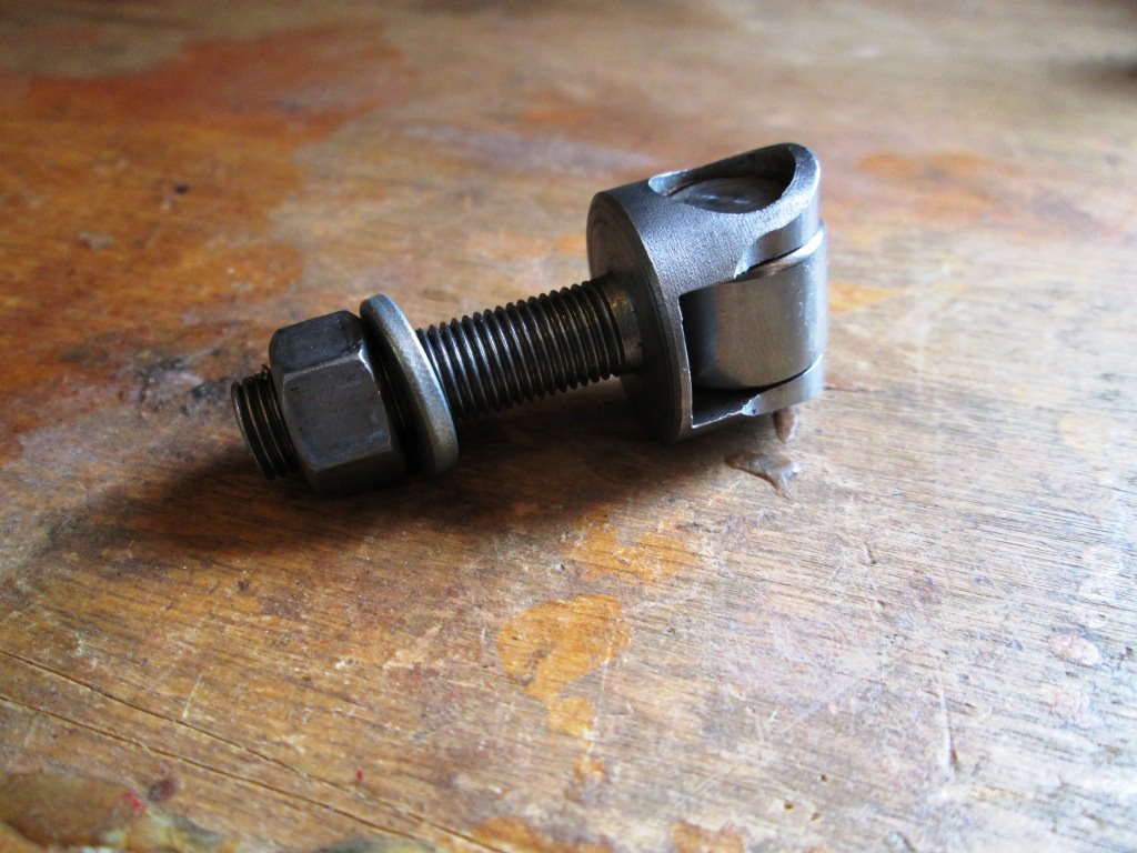 What the Ford way looks like over time, mashed threaded end of bolt on left. New bolt in center with rounded hex. Just grind what shape you wish, the globe end in the old time sketch seems excessive to me, and make future adjustment tough to put a wrench on the round end, but would give a ball bearing slide
