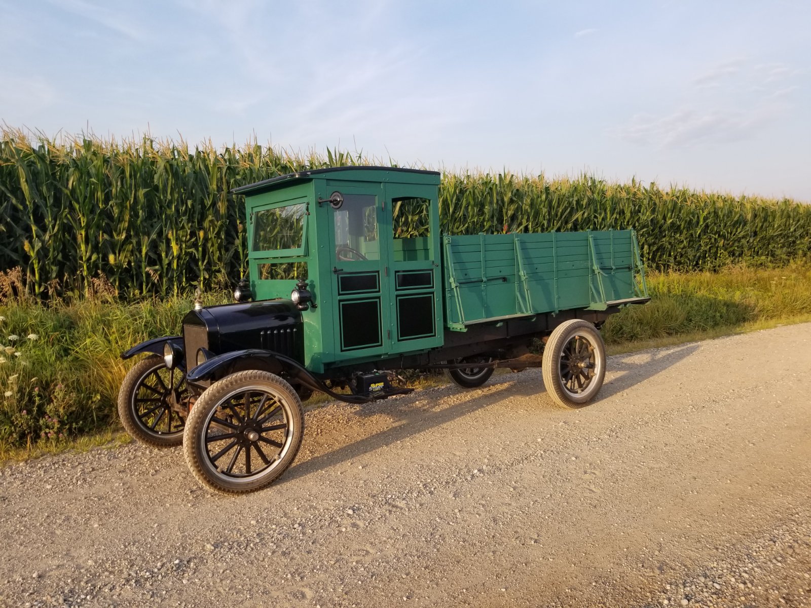 1923 TT with a Martin-Parry No. 20 vestibule cab. It has an American 8in1 convertible motor truck body " bed" that is 9ft long. It has an aftermarket period frame extension with a Chicago 3 speed trans. Its 17 ft. long and 7ft 4in tall. It has high speed gears in the rear and an Apco explosion proof muffler. Kelsey 33x4 1/2 in wheels in the rear and kelsey 30x3 1/2 front wheels. Maybe some guys that are thinking they may want a TT can see all the different styles and options, we can push them over the edge into the twisted world of the TT truck.