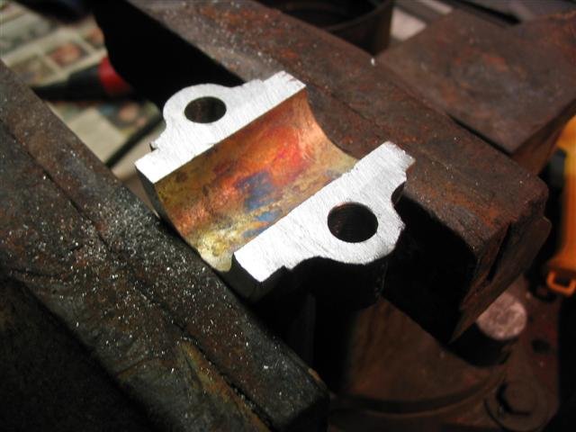 The shaft should have a radius of 1/16 at the rod pins so I cut just a tad over a 1/16. Very nice looking pour, please show us your set up. Also the fixture for boring the rods. Bob 903 824 1949
