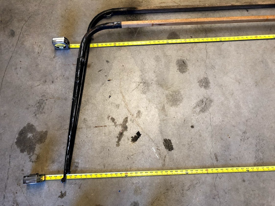 With the bows on the ground the passenger side on the three top bows appears closer to 90 degrees, maybe 100°where the drivers side is like 115°, a more open angle. Maybe that one side should be closed up a little? Maybe not. For the front, bow #2 is about the same and bow #1 seems just right, to me anyway. I just don't have anything to compare with. This top set has been moved from house to house for 45 years. Maybe they got bent. Maybe they were always bent. Maybe they're not bent. Also they don't quite nest perfectly when folded down. Close but not perfect. I can push, pull and bend to better align but I just want to make sure I'm moving in the right direction. I know this is not uncommon.