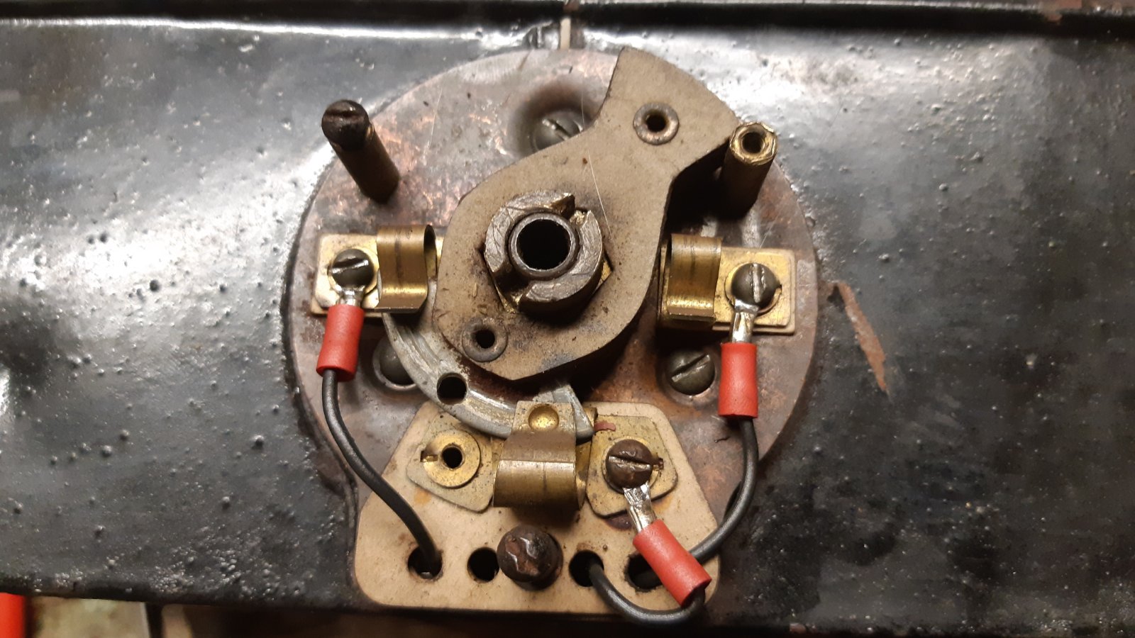Bought this unrestored hand crank coil tester in Buffalo a few weeks back. Removed the black overpainting to get down to the original blue hue. I removed all the magnets to clean the flywheel and recharge the magnets. Also had to take the Jewel ammeter apart and reset the main pivot shaft to get it working. Just need to replace the four insulated spacers and rebuild the coil receiving box to get it up and going.
