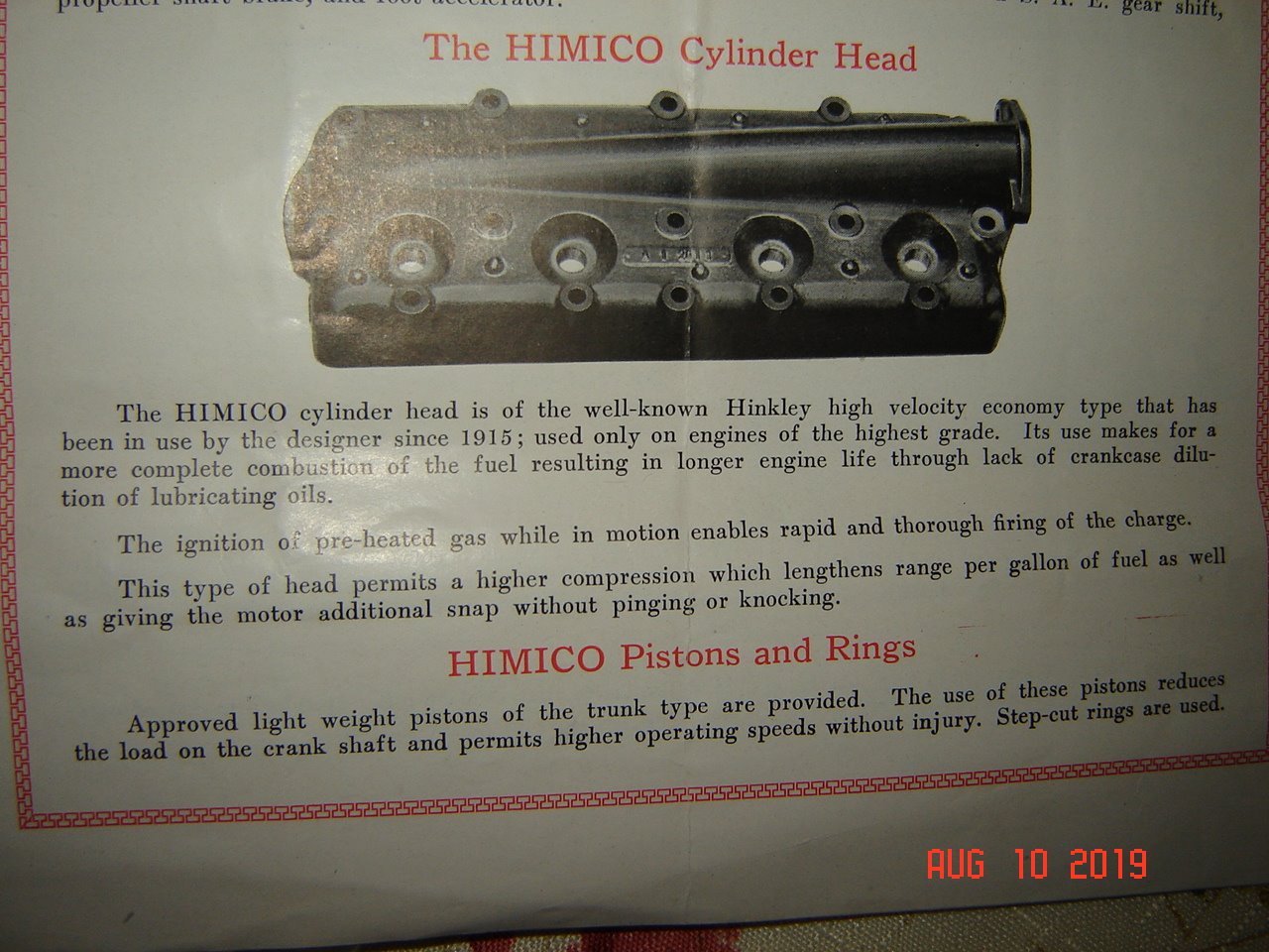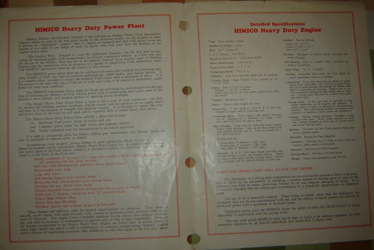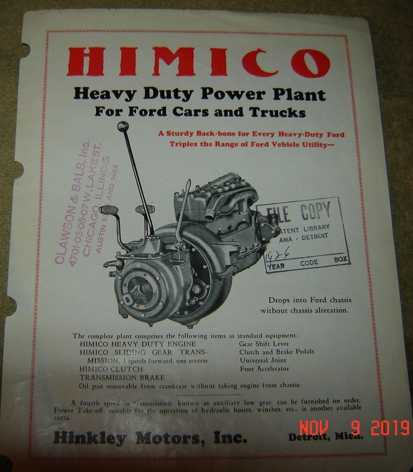 I found another piece of HIMICO literature recently that is probably later than the other photos that I posted in August when you bought the HIMICO from Model T Haven. Because this piece has the wide pedals like a stock 1926-27 Model T engine, rather than the narrow paddles like the earlier engines, I think that probably dates it.