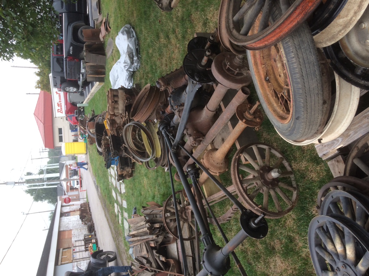 In general, things went for fair to high retail prices. There were lots of great buys but many things are sold in large lots. $5 a oil pan is good but you had to buy all 12-15, buckets and totes of gears, pistons, bands, etc, $5-20 each, but buying buckets and totes start to take a lot of space in the truck. The 2 chassis went for around $2k each, 26-27 engine on stand over$600. Smith form a truck had the open valve engine stolen befor the auction, it went for about $3k w/o an engine. 26 coupe $4k, 26 roadster $3.7k, real nice 26-27 four door body with new paint and decent original seats just $400. 26-27 wire wheels $90-160. Wire hubs $90-130. New brass radiator $1400. Re-core high radiator about $ 200.