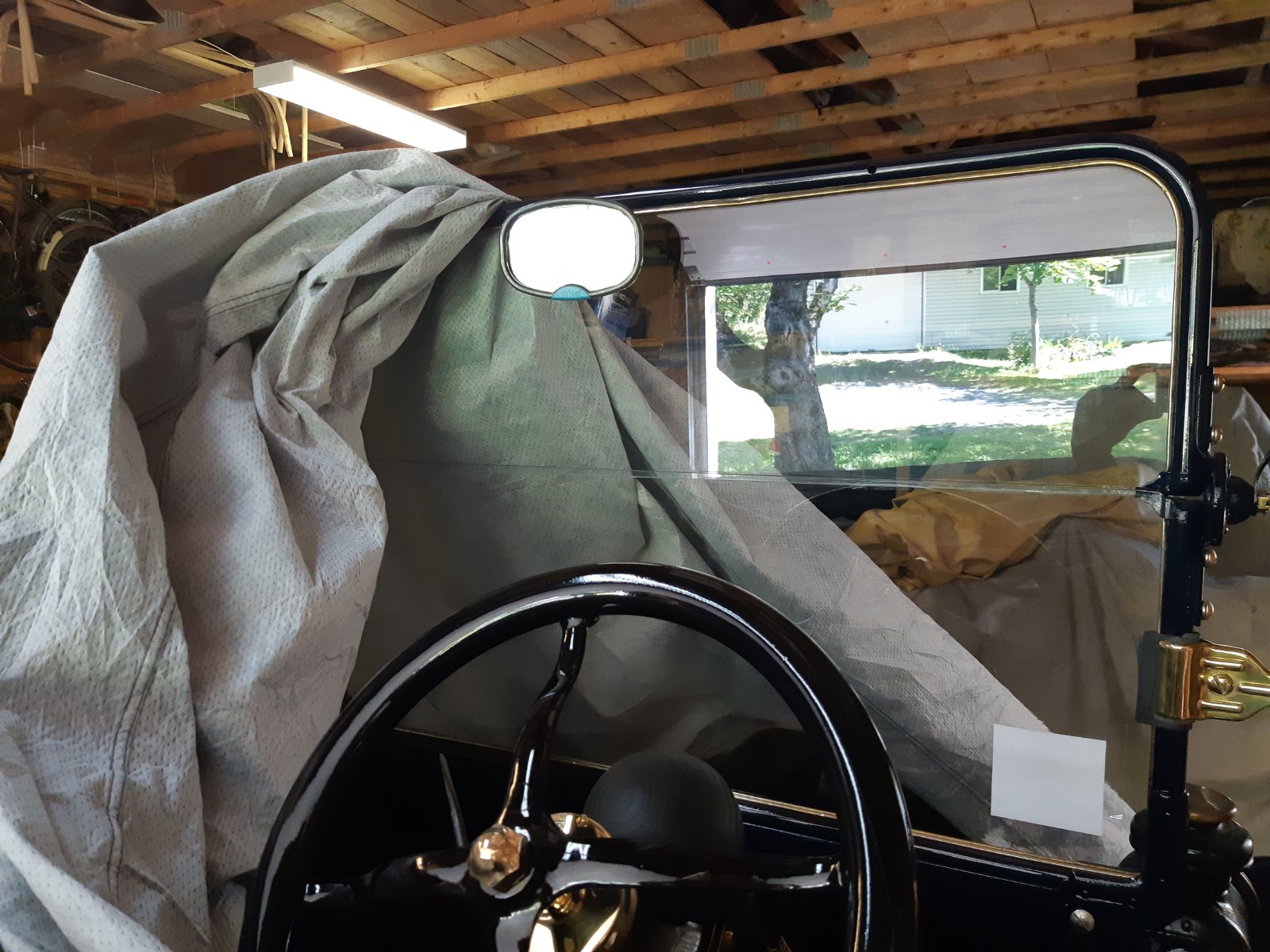 (That's the type that mounted top center of windshield.) By around 1926 Ford sold the top of windshield or header mounted rear view mirror for open and closed cars.