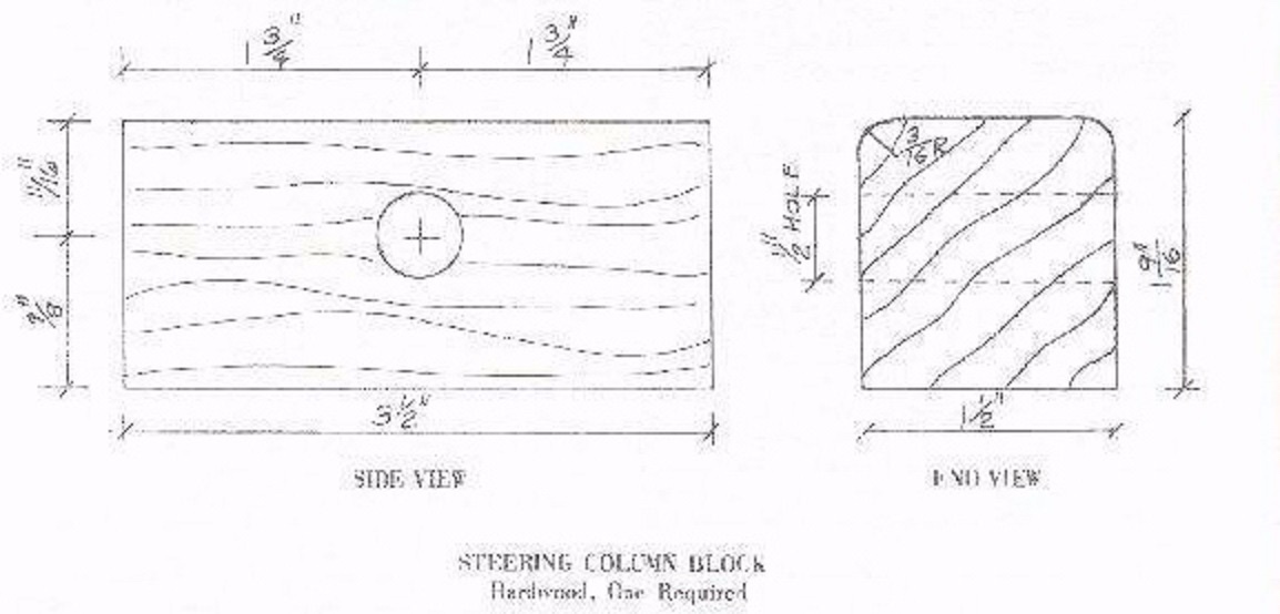 Can someone provide the diamensions for the wood block spacer at the steering box/frame.