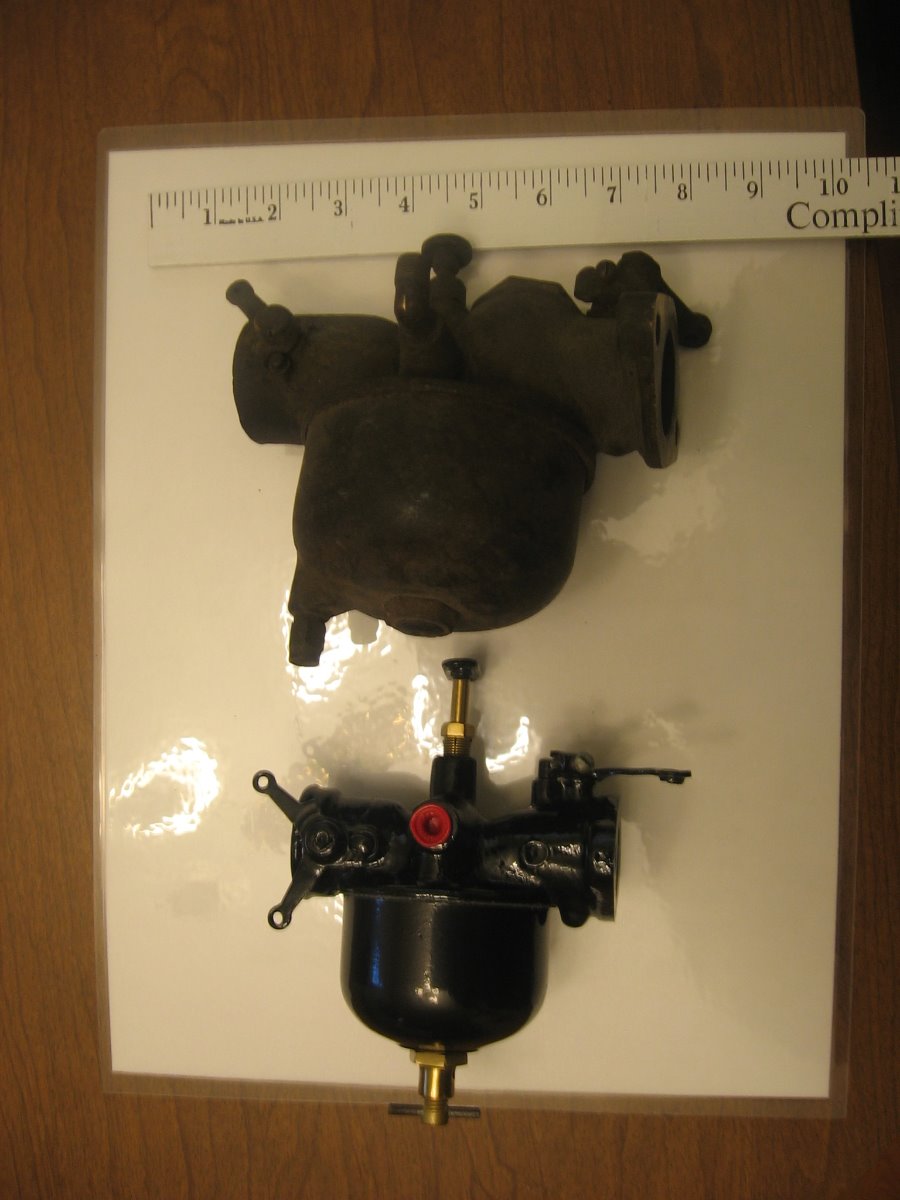Below is pictured a KINGSTON MODEL “L” BRASS CARBURETOR with a Model T NH carburetor below to compare size. (details Below)