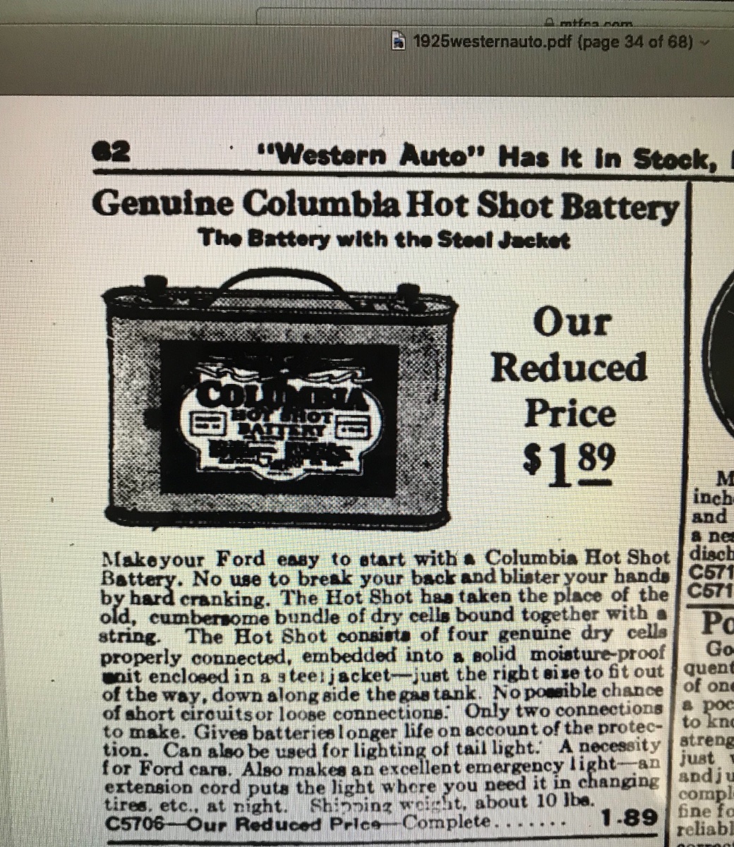 I asked this question on one of the model T Facebook pages and got nothing but people telling me that a 1914 doesn’t have a battery. So please, only respond if you know about 1914 cars and have the answer.