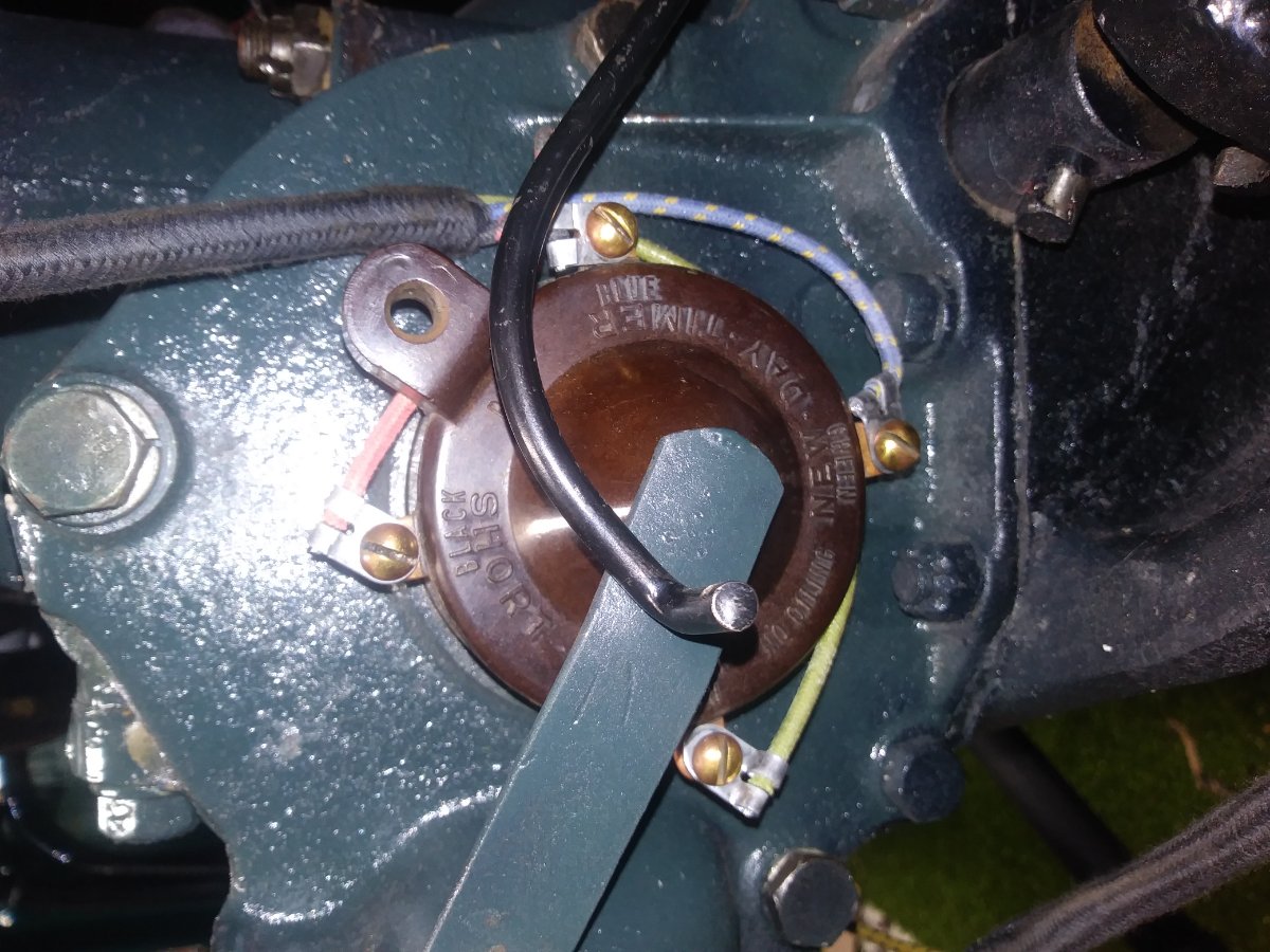I just installed a nice old stock New Day on my 27 Roadster. I wired it according to the instructions that came with the wiring harness but the color code is totally off from what's marked on the New Day. I believe I have the piston travel correct by watching through the spark plug hole and using a straw but as I turn the timer the coil starts buzzing long before I get to full retard. And the wrong coil is buzzing. Am I getting something dead wrong or should I color match the wires per the New Day marked code ?
