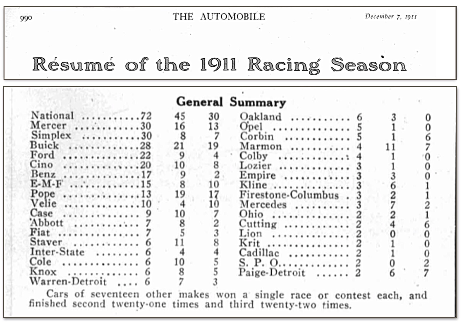 Although Kulick and Ford didn’t race year around during 1911, and only had one primary driver, FMC still finished 5th in overall victories in 1911, beating several makes including Benz, Fiat and Mercedes.