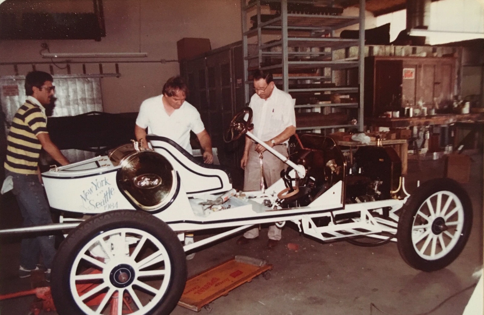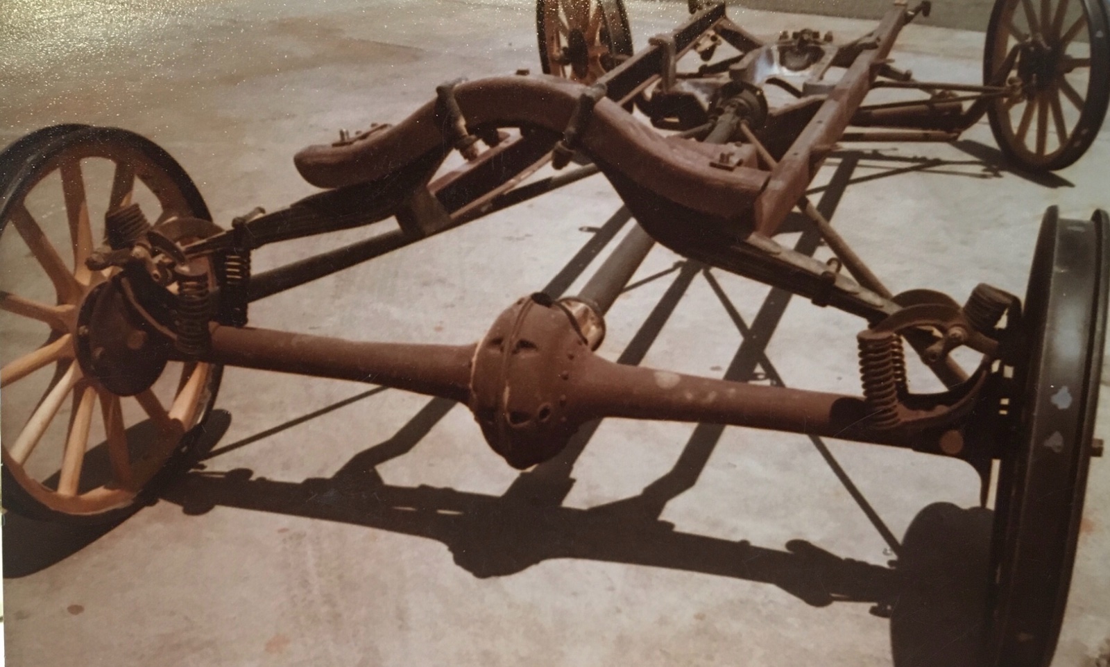 35 yrs. ago I remember seeing a little article in Old Cars Weekly, that the MTFCI was going to rerun the 1909 New York to Seattle race. I thought that would be fun to go on, so I contacted the person in charge and was told that the entry list was full with about a dozen on a waiting list. It was still 6 mo. before the run so I thought “well maybe”. So I had an idea for a car, so I started to gather parts. I wanted to build an early car, so I found a 12 rivet rear, tapered springs,early spindles, wishbone, tie rod, etc, etc. Got 2 frames, one with bad front and one with bad rear. Cut the bad ends off and zeed the rear section to give me a 4” step. Got a 4” dropped axle from Mor Drop and sent the wheel hubs with new rims to Vintage Wheel. In about a month I had all the parts to assemble the chassis
