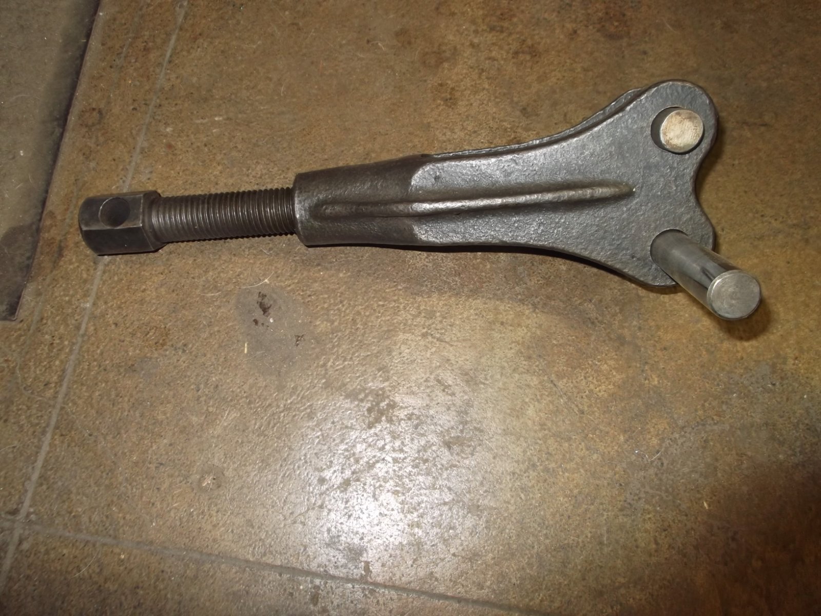 This tool is shown in the cabinet in one of the 1926 KRW tool catalogs but it is not listed in same. I tried it on an T front axle to remove perches but as is does not sit inline with threaded end, it sits at an angle. Ideas? Thought maybe Lincoln or tractor?