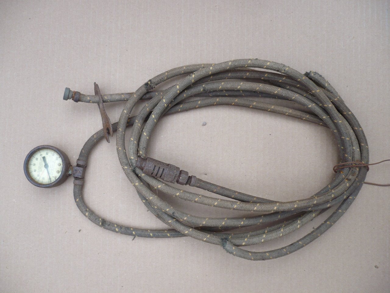 The Ford (tractor) pump is really neat! I bet that Ford pump was made in the 8-9n Ford era which was 39- 52. Could be later but not much later. The braided cloth covered hose goes way back anyway.