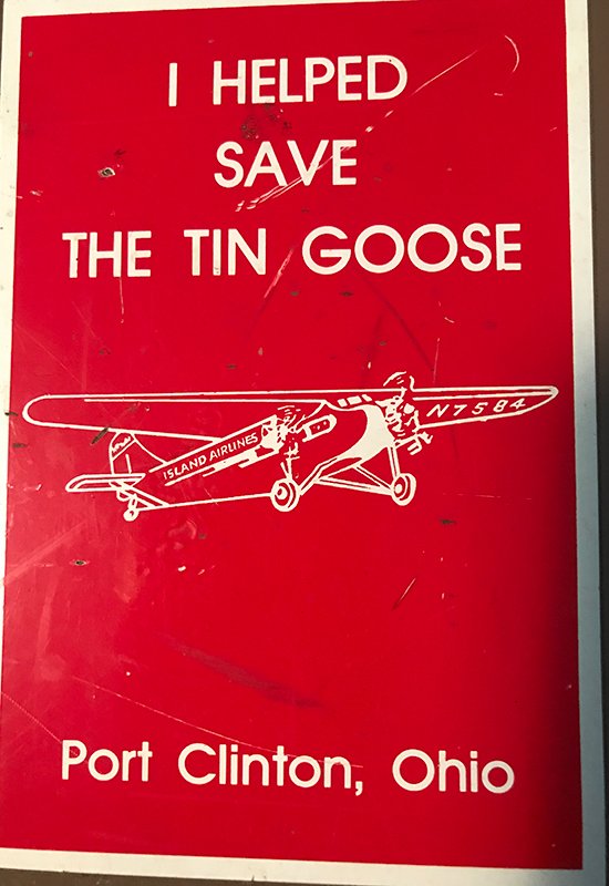 Island Airlines flew Ford Trimotors from Port Clinton Ohio to Put-in-Bay island until the mid 1980's. The signs in question may or may not be real, but the airline and the trimotor connection is real.