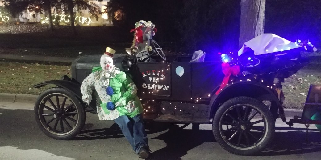 After a month of intense labor on the T, she was ready to go for the Howell, MI "Fantasy of lights" parade yesterday. She ran great throughout the parade , even towing a "library" float behind her. Brought laughter and smiles to everyone. Trying to download pics.