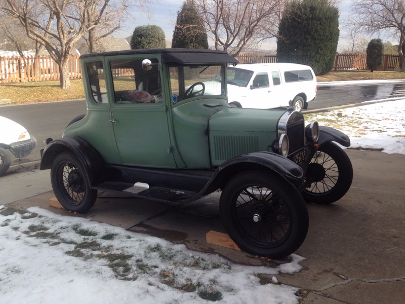 I have a 1927 doctor’s coupe from my father. He purchased it in 1968 or 69. I was with him and I remember the day he brought it home. It was a rolling chassis and a bunch of boxes. Now he is gone and I am really looking at it for the first time in years. The paint and body work are in need. The original car was green with black fenders. Obviously the car is not on great value. It is set up for touring, so it is a good car, but not a show car.