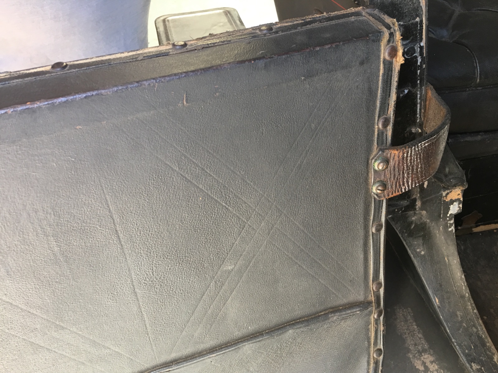 I have reached a critical point on the restoration of the 09 as I completed the upholstery and that was the last item which required new materials. I used the original (1955?) seat covering which were leather over foam and horse hair. I had to use new trim and upholstery nail and new leather on the doors. All that is now completed.