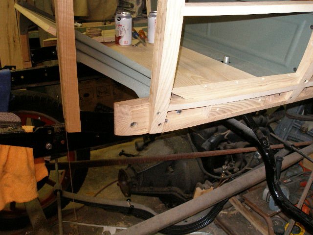 You are misunderstanding my semantics. The vertical (at least the far left/right) members must be to the passenger (originally stated "inboard") side, and the top horizontal board must be outboard or rearward, toward the sheet metal. This is what sets and creates the rigid foundation to the rear sheet metal. The little (approx) 1x1 strips are merely the tack strip for seat and top and provides little real support for sheet metal, and they are placed outside of the metal surface.