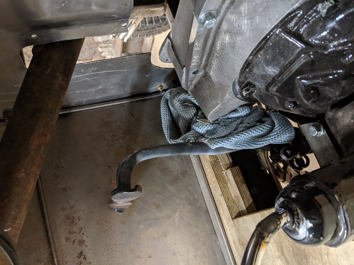 I then made a toggle lever to weld to the hand operated service brake cross shaft. I will make a rod to link this to the foot brake. That way I can use the foot brake for practicality, or hand brake for the true racer feel.