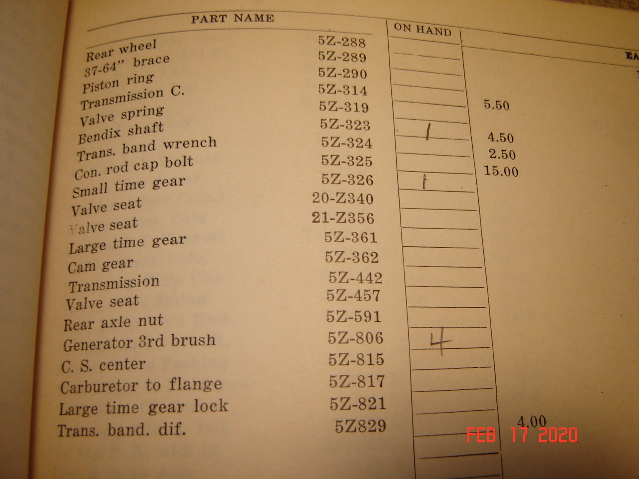 They had over $4100 in new Ford parts in stock, and about $2200 in tires and tubes and related supplies.