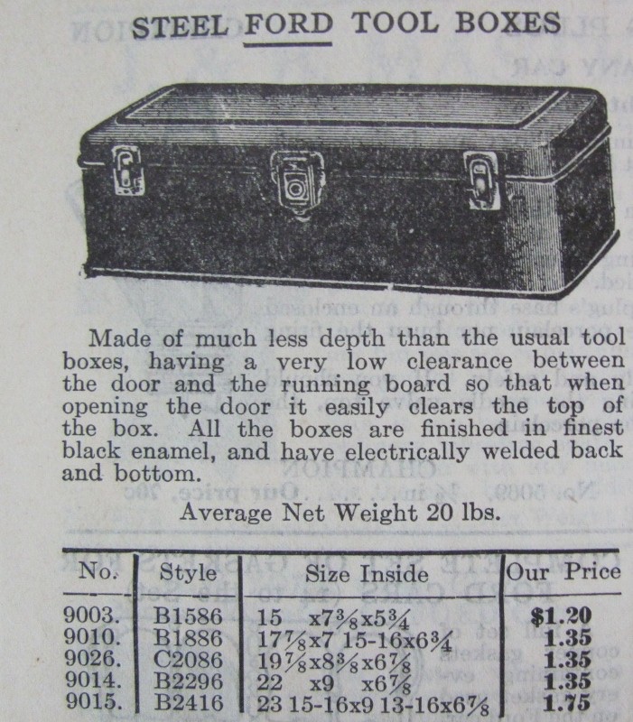 But not a real bad price @ $80 for what you get, Ford Service is worth $32 along, tools about $15 total with those hinge things, maybe $20 ....so that nice shiny box is at $33 or so ;) bundled that is. May be nice size for the rear deck on a spiffy speedster :P
