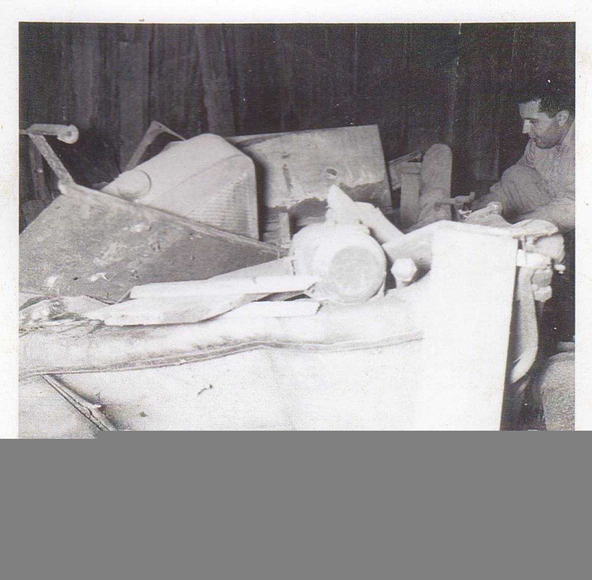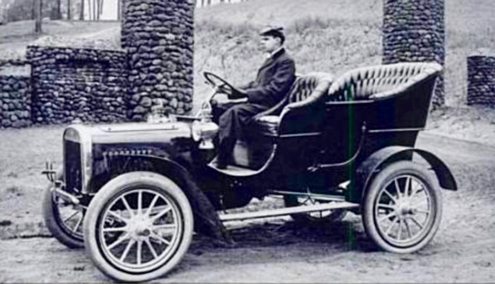 Here is what little I have, Rob. These are pics of the discovery of B#1. I wish now I would have recorded the story. It was found in Missouri, and the tall old farmer was the owner. He was going to restore it one day. LD Porter convinced him that he’d rather have a couple hundred bucks. A couple small treasures I have is a pencil rubbing of the serial number, and one of the hubcap medallions. It was dinked up and he replaced it with another.