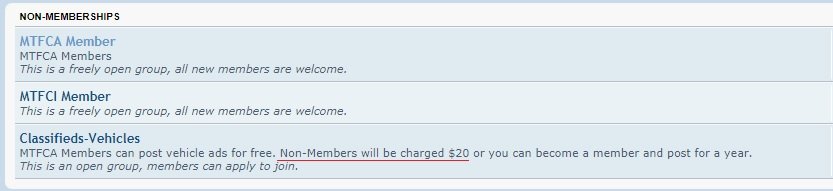 Interesting! I had no idea that non-members of MTFCA would have to pay $20.00 to post vehicle for sale ads. Maybe an attempt to deter scammers.